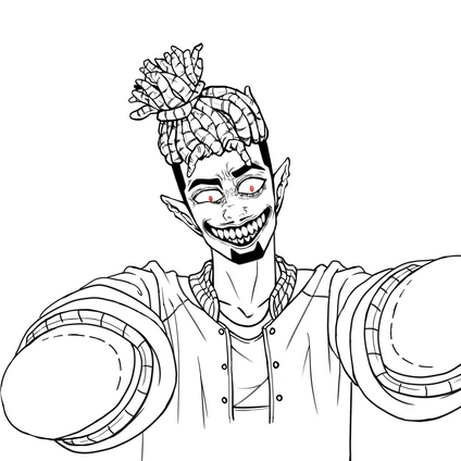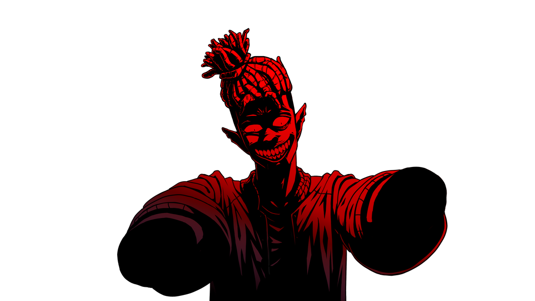 Creating Demon Darwin was a little bit of a challenge as there were multiple ways I imagined this handsome young man to be even more devilish. Above, you can see the process of the final rendition which came out as fiery as expected, but my initial take on him was a little more on the deranged side rather than menacing as he was intended to be.